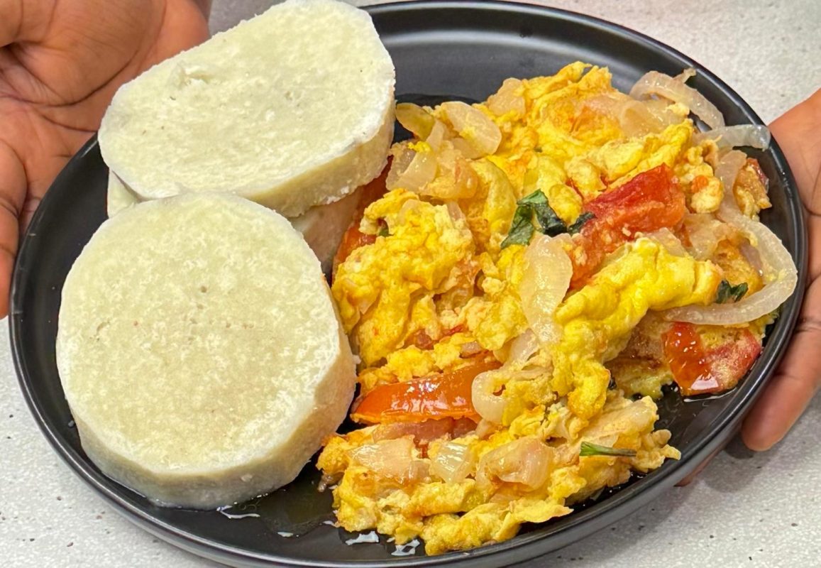Egg sauce and boiled Yam